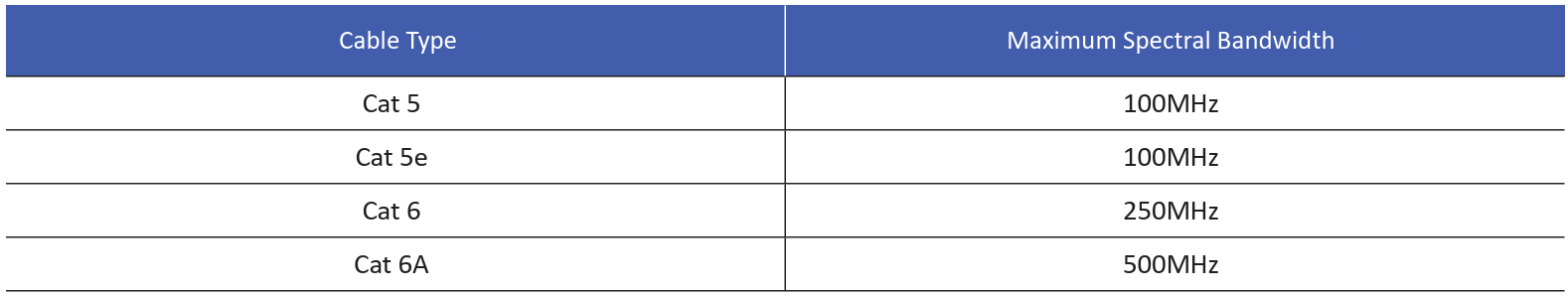 Table 2: Maximum Spectral Bandwidth per Cable Type
